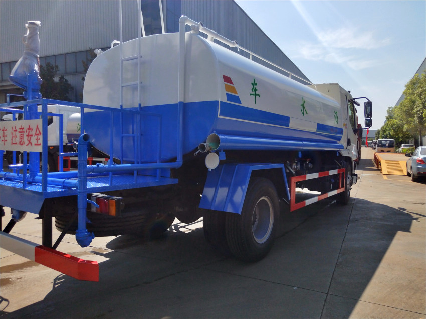灑水車吸程≧7米,灑水寬度≧14-16米,射程≧25-40米,引水時間<5min,流量60m3/h。前沖(噴)、后灑、帶側噴(花灑)、帶后工作平臺、平臺上安裝綠化灑水高炮(炮噴射形狀可調節:直沖、大雨、中雨、毛毛雨、霧狀、可連續調節,360°旋轉),配消防接口,自流閥,濾網,帶自吸自排功能。配備大功率專用灑水泵,泵可自吸自排,安裝過濾網,帶消防接口,可通過消防栓進水,帶自流閥,隨車選裝20米綠化卷盤,可噴灑農藥,罐體金屬漆。罐體有橢圓和方圓罐兩種,可根據用戶的要求定做
