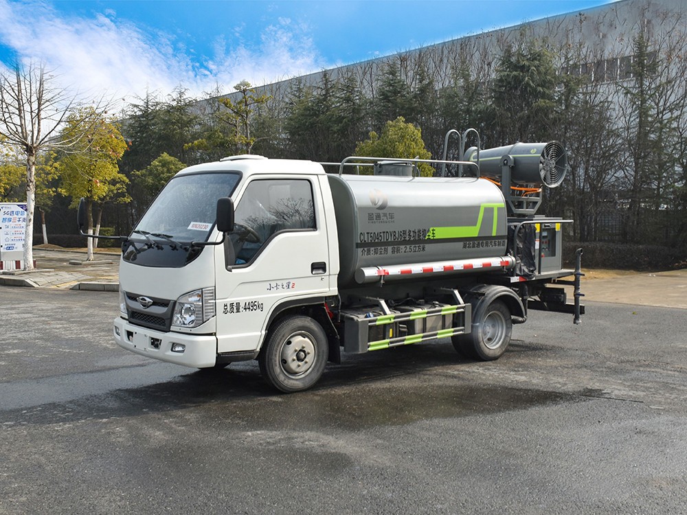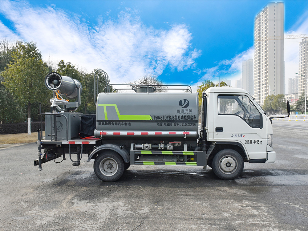 3方霧炮灑水車 整車型號 CLT5045TDYBJ6 型多功能抑塵車 2 發(fā)動機型號 Q23-95C60 3 發(fā)動機馬力/功率 全柴 95 馬力/70KW 4 發(fā)動機排量 2300ML 5 變速箱 蒙沃 5 檔箱 6 輪胎規(guī)格 6.00 鋼絲胎 7 軸距 2600 8 總質(zhì)量 4495KG 9 整備質(zhì)量 2700KG 10 額定載質(zhì)量 1665KG 11 整車尺寸(長×寬×高) 5.365*1.9*2.6 12 罐體容積 2.7 方 13 燃料種類 柴油 14 排放標(biāo)準(zhǔn) 國六 15 水泵型號 40/50 16 罐體材質(zhì) Q235 碳鋼產(chǎn)品功能展示 霧炮 后灑 后對沖 高炮 側(cè)噴