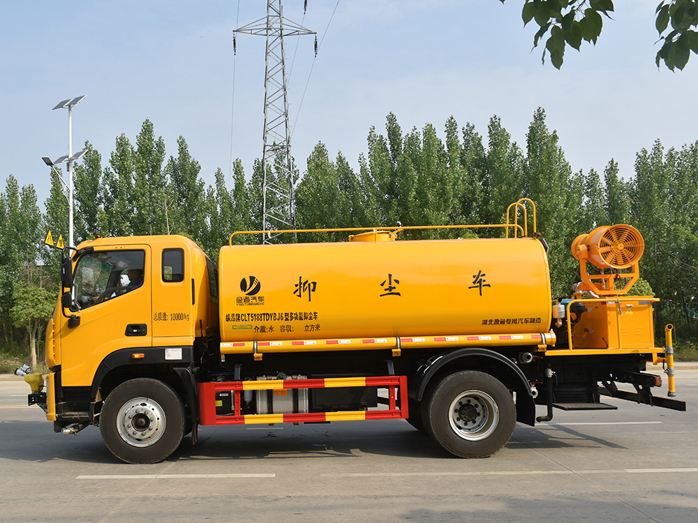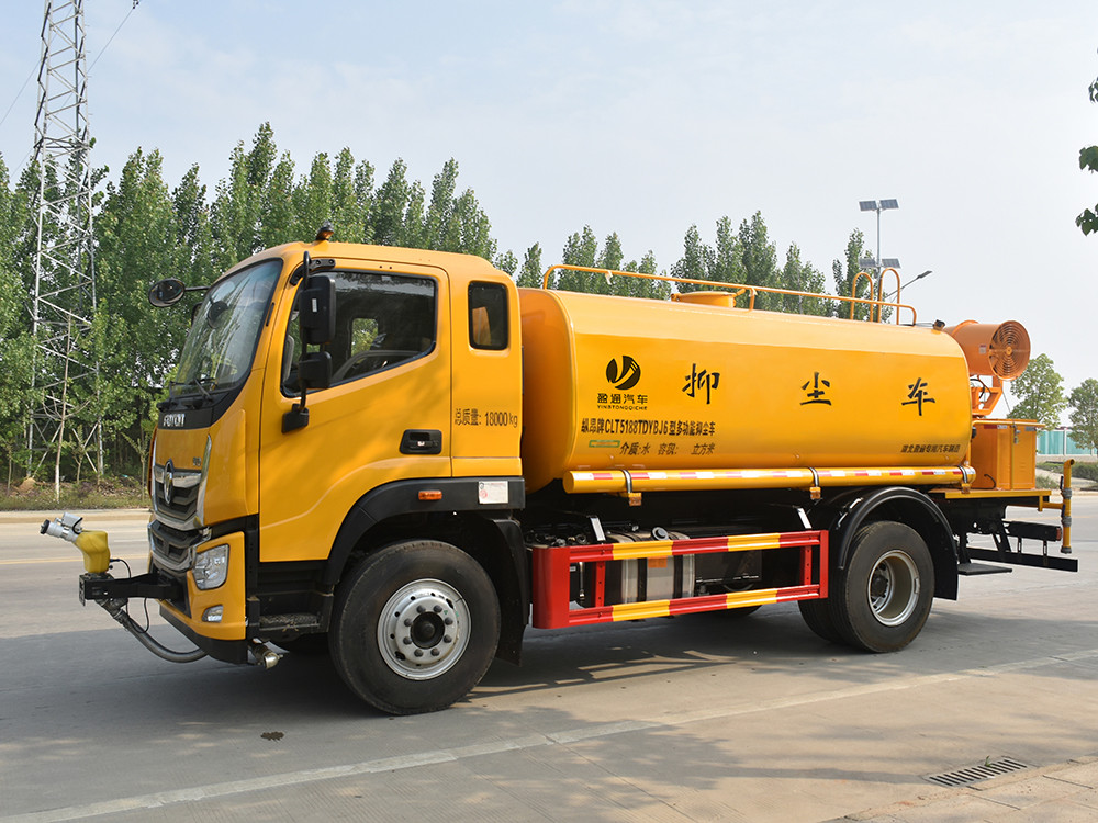 12 方奧鈴大黃蜂抑塵車,灑水車產品主要技術參數 序號 名稱 型號、規格 1 整車型號 CLT5188TDYBJ6 型多功能抑塵車 2 發動機型號 YCS04200-68 3 發動機馬力/功率 玉柴 200 馬力/147KW 4 發動機排量 4156ML 5 變速箱 法士特 8 檔(帶高低檔) 6 輪胎規格 10.00 鋼絲胎 7 軸距 3950 8 總質量 18000KG 9 整備質量 6800KG 10 額定載質量 11005KG 11 整車尺寸(長×寬×高) 7.785*2.5*3.3 12 罐體容積 12 方 13 燃料種類 柴油 14 排放標準 國六 15 水泵型號 60/90 16 罐體材質 Q235 碳鋼產品功能展示 前沖鴨嘴 后灑 后對沖 高炮 高位花灑 側噴 霧炮