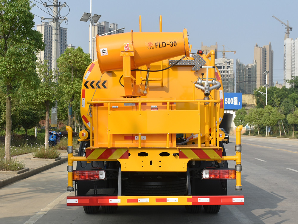 12 方奧鈴大黃蜂抑塵車,灑水車產品配置 1.底盤配置: 發動機玉柴 200 馬力(四缸),法士特 8 檔變速箱,加強型 8T 后橋,10.00 鋼絲胎,軸距 3950,原廠空調,原廠取力器,電動玻璃, 中控鎖,斷氣剎2.上裝配置: 1、罐體約為 12 方,可加裝 30-40 型霧炮 2、邊燈帶電,罐體尾部上方標配 2 個紅色示寬燈, 3、標配前噴為鴨嘴直沖,標配后沖,用戶可根據自己的需求,來調 整對沖位置。 4、花紋防滑平臺,炮筒后蓋為定制型螺栓卡扣, 5、前噴、后沖、后灑、側噴,綠化高炮開關球閥均采用 50 大通經 不銹鋼球閥, 6、新式軸承式水炮,更加耐用, 7、60-90 型水泵, 8、防腐法蘭墊片, 9、鋁制后灑,不易炸開 10、罐體自動焊(美國林肯焊機及電源),拼板自動焊接,封頭環 縫焊接,無氣孔,焊縫美觀。 11、側護網、后保險杠、均為螺栓連接,方便拆卸,維修方便。 12、塑料擋泥板,替代鐵擋泥板,更加輕便,用螺栓連接,方便拆 卸。 13、前部、后部主管連接處為 6 孔圓法蘭,不易沖墊