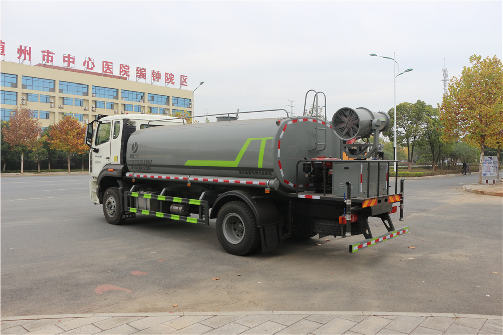 整車說明:選裝噴霧裝置樣式。該車用途為抑塵降霾.主要裝置為罐體及噴霧裝置;隨底盤選裝駕駛室;選裝附件布置;罐體有效容積:12.2立方米,罐體外形尺寸(長×長軸×短軸)(mm):4800×2400×1530,ABS系統型號為446 004 6300,生產企業為威伯科汽車控制系統(中國)有限公司。選裝EBS,EBS系統控制器生產企業:威伯科汽車控制系統(中國)有限公司,型號:EBS3。側、后防護材料均為:Q235碳鋼,連接方式均為:螺栓連接,后部防護截面尺寸(mm):120×50,后部防護離地高度(mm):480.采用4700mm軸距。