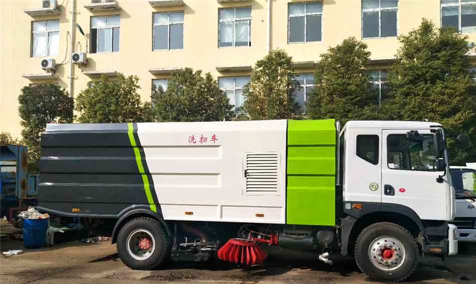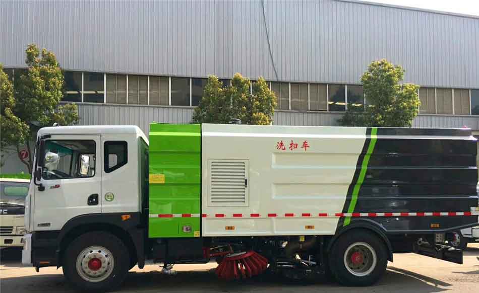 東風D9洗掃車上裝配置:帶不銹鋼箱體,容積為9立方,帶2個中置掃盤,康明斯170馬力副發動機;意大利馬達;德國高壓水泵(前沖/側噴/中噴/后噴霧/沖洗水槍/垃圾箱自潔裝置);萬向高壓路沿清洗噴頭,威龍低壓泵(前沖);不銹鋼垃圾箱;不銹鋼管高壓管路;德國控制器;韓國控制箱;PLC一鍵控制;尾部LED箭頭燈;機油、垃圾箱、水箱均帶防溢低水位報警裝置;倒車及洗掃狀態室內監視器。18m高壓沖洗卷盤。清掃寬度3.5m;清洗壓力10MPa;吸入粒度φ110mm。