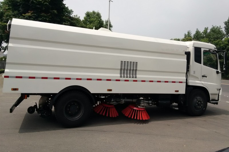 帶4個掃盤、康明斯140馬力副發動機、三洋馬達、法國施耐德控制開關、海普瑞斯電磁閥組、無級變速自動離合器、免維護離心式自動風機、不銹鋼垃圾箱、尾部LED箭頭指示燈、手動泵應急系統、垃圾舉升自卸功能。