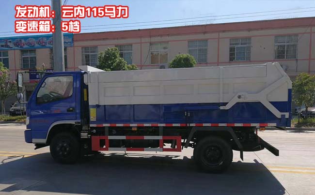 時風藍牌對接式垃圾車,時風風順純工程車底盤,云內(nèi)115馬力發(fā)動機,5檔帶副變速箱,軸距3280mm,雙層大梁,7.00R16輪胎,帶方向助力,ABS。
