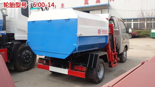 北汽黑豹掛桶式垃圾車。北汽輕卡底盤,單排一體駕駛室,銳展112馬力,汽油發動機,蒙沃5檔520變速箱,12V電瓶,油剎,6.00-13輪胎,后雙輪,帶原廠取力器,125mm變截大梁。