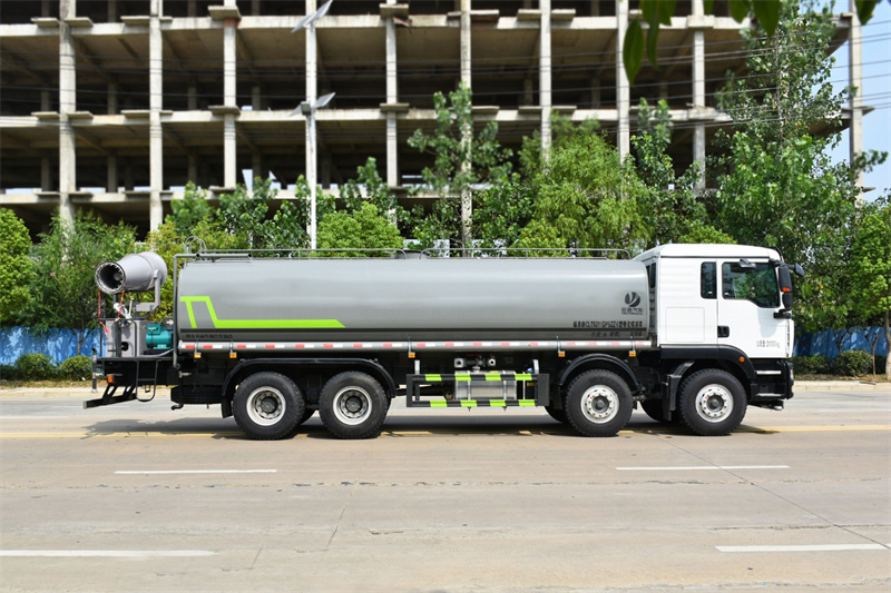 灑水車產品配置 底盤采用重汽豪沃TX專用底盤,豪沃TX駕駛室采用德國曼TGA駕駛室 本體改進而成,不僅美觀大方,且舒適實用;德國曼350馬力發動機 , 德國技術動力強勁且油耗低;軸距1850+3800+1350,輪胎11.00R 鋼絲胎,豪沃9檔帶同步器變速箱,掛檔輕便;德國曼7.5噸雙前橋 和11噸雙后橋, 自重輕,承載強。