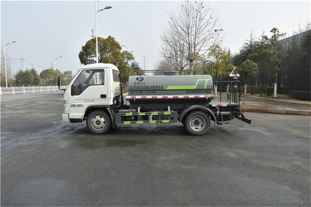 定州灑水車產品主要技術參數 序號 名稱 型號、規格 1 整車型號 CLT5042GSSBJ6 型灑水車 2 發動機型號 Q23-95C60 3 發動機馬力/功率 全柴 95 馬力/70KW 4 發動機排量 2300ML 5 變速箱 蒙沃 5 檔箱 6 輪胎規格 6.00 鋼絲胎 7 軸距 2600 8 總質量 4495KG 9 整備質量 2285KG 10 額定載質量 2080KG 11 整車尺寸(長×寬×高) 5.33*1.9*2.2 12 罐體容積 2.7 方 13 燃料種類 柴油 14 排放標準 國六 15 水泵型號 40/50 16 罐體材質 Q235 碳鋼