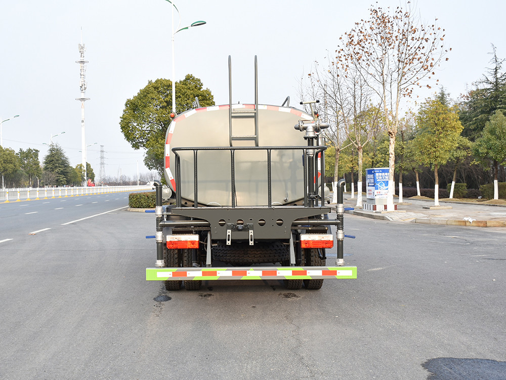 張家口灑水車產品配置 1.底盤配置: 發動機云內 185 馬力(四缸),法士特 8 檔變速箱,7.7 噸后橋, 重載底盤,適合爬坡,8.25R20 鋼絲胎,軸距 3800,斷氣剎,ABS,空 調,電動玻璃,中控鎖2.上裝配置: 1、罐體約為 11.2 方, 2、邊燈帶電,罐體尾部上方標配 2 個紅色示寬燈, 3、標配前噴為鴨嘴直沖,標配后沖,用戶可根據自己的需求,來調 整對沖位置。 4、沖孔平臺(承載能力加強),炮筒后蓋為定制型螺栓卡扣, 5、前噴、后沖、后灑、側噴,綠化高炮開關球閥均采用 50 大通經 不銹鋼球閥, 6、新式軸承式水炮,更加耐用, 7、40-50 型水泵, 8、防腐法蘭墊片, 9、鋁制后灑,不易炸開 10、罐體自動焊(美國林肯焊機及電源),拼板自動焊接,封頭環 縫焊接,無氣孔,焊縫美觀。 11、側護網、后保險杠、均為螺栓連接,方便拆卸,維修方便。 12、塑料擋泥板,替代鐵擋泥板,更加輕便,用螺栓連接,方便拆 卸。 13、前部、后部主管連接處為 6 孔圓法蘭,不易沖墊
