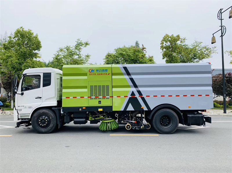 采用先進的智能化一鍵控制技術,全部作業均在駕駛室內完成,作業時,只需選定作業模式后,各作業機構的啟動與關停由程序自動控制。具有全洗掃作業、左洗掃作業、右洗掃作業、全掃路作業、左掃路作業、右掃路作業、全吸作業、左洗作業和右洗作業等9種作業模式可選。