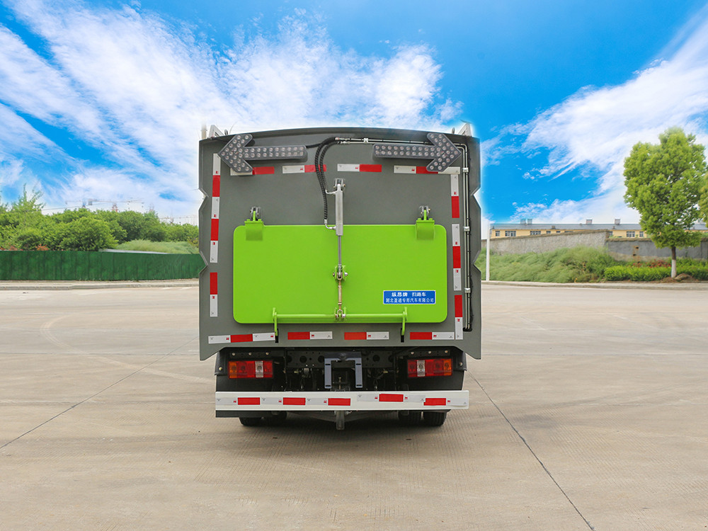 掃盤遇到障礙物后自動回縮,該功能有效地解決了清掃裝置易碰損的問題。全浮動吸嘴,并可選裝帶臥吸嘴,具有清掃寬度大,清掃效率高的特點,并有利于清掃裝置與吸嘴的調(diào)整和維護。垃圾箱內(nèi)膽采用雙層結(jié)構(gòu),內(nèi)層為全不銹鋼。車箱尾部加裝箭頭警示燈,設(shè)置了手動泵應(yīng)急系統(tǒng),在副發(fā)動機停機的狀態(tài)下也能收放、舉升垃圾箱,便于維修保養(yǎng)。主、副發(fā)動機共用柴油箱,油量在汽車儀表板中顯示