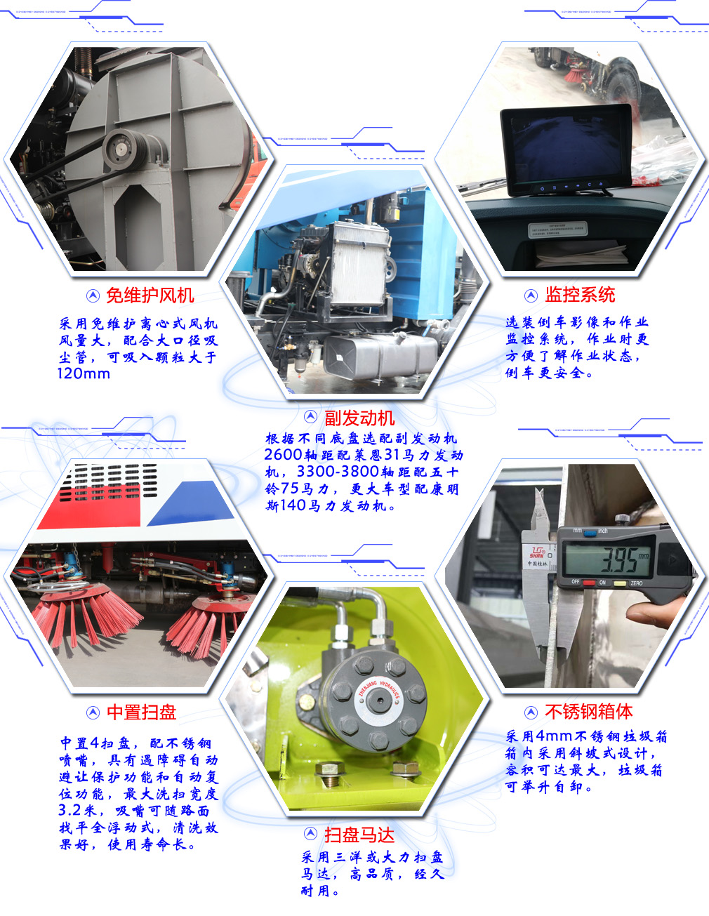 | 備注 | 此車為道路洗掃專用車輛,專用裝置為掃刷.防護裝置均采用Q235A材質(zhì),均采用焊接連接, 專用裝置掃刷代替部分側(cè)面防護,掃刷離地高為(mm):180,后下部防護與車架焊接連接, 后下部防護尺寸:50×150(mm),離地面高度420mm. ABS系統(tǒng)型號為XH-KQ4S4M-E01, 生產(chǎn)企業(yè)為廣州市西合汽車電子裝備有限公司;型號為CM4XL-4S/4M, 生產(chǎn)企業(yè)為廣州瑞立科密汽車電子股份有限公司.整車長/軸距對應關(guān)系為(mm):7590/4200,7890/4500, 8090/4700,8590/5200,8990/5600,4700/8310,5200/8680.選裝不同的外觀圖片.隨底盤選裝駕駛室. | ||