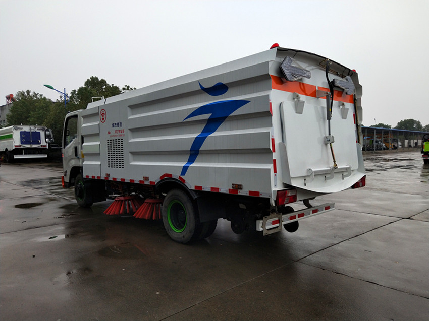 1、掃路車采用吸掃結(jié)合的方式收集垃圾,濕式除塵、電液控制,液壓傾翻卸料的作業(yè)方式對路面進(jìn)行清掃作業(yè)。