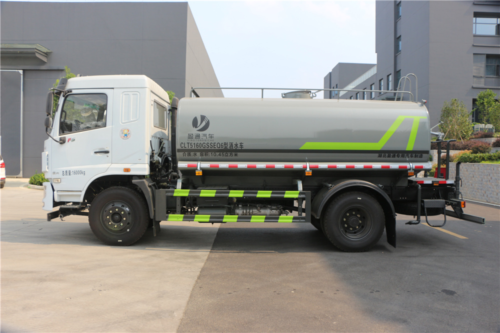 灑水車整車說明:ABS型號:3631010-C2000,J ABS;ABS生產企業:東科克諾爾商用車制動系統(十堰)有限公司,焦作博瑞克控制技術有限公司;選裝描述:隨底盤選裝駕駛室;所用材料材質、連接方式以及后部防護裝置的主要尺寸參數(斷面尺寸和離地高度):側、后防護材料均為:Q235碳鋼,連接方式均為:螺栓連接,后部防護截面尺寸(mm):120×50,后部防護離地高度(mm):450;罐體有效容積(立方米)、罐體外形尺寸(mm):罐體有效容積:10.45立方米;罐體外形尺寸(長×長軸×短軸)(mm):4200×2300×1450;專用功能及裝置:該車主要用于路面灑水及園林綠化;主要裝置為水罐及噴灑裝置;其他說明:僅采用3950mm軸距;