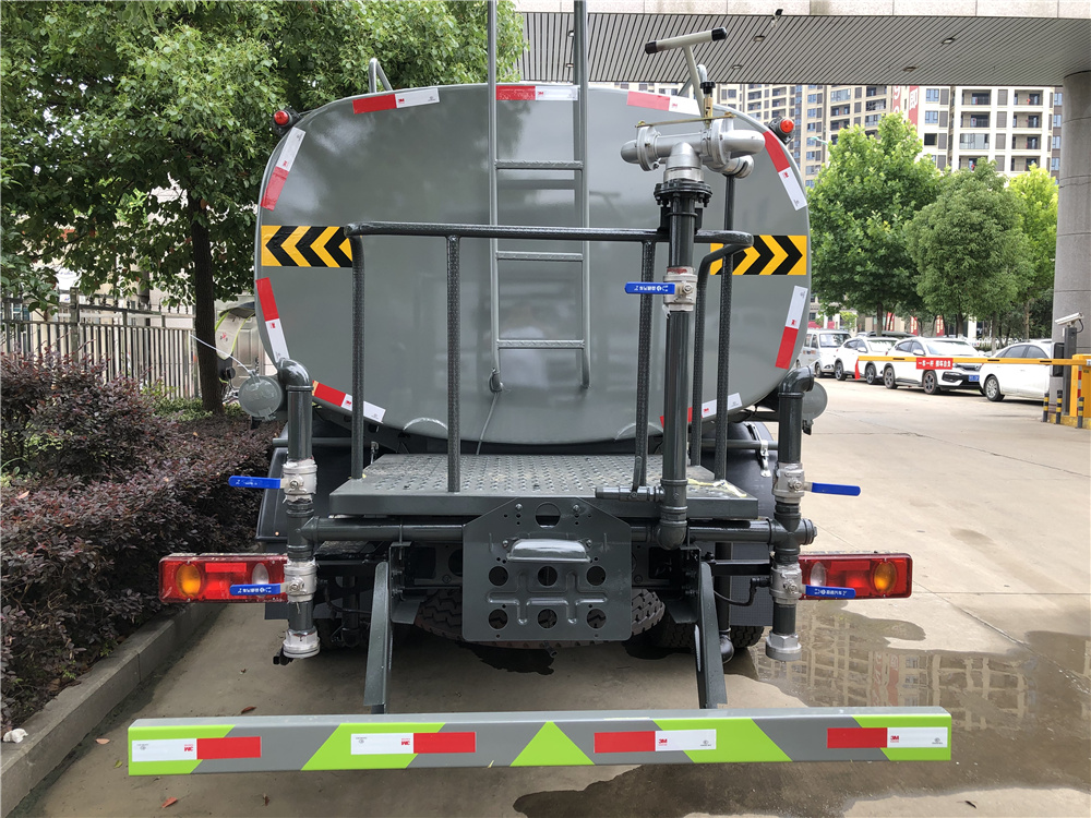 • 東風華神T1灑水車專用功能配置:罐體實際容積約為9.35立方米,采用武鋼優質碳鋼板卷壓成型。配備專用灑水泵,自吸自排,前噴后灑、側噴、后工作平臺及灑水高壓炮。灑水泵自吸高度為6米左右,整車灑水寬度14米左右,后工作平臺水炮可調成:直沖狀、大雨、中雨、小雨、毛毛雨,有效射程≥28米,整車帶接頭、水位計,自流閥。后工作平臺主管道有一個一寸的澆花接口,附送2根3米水管,1個爬梯,兩側及后保險杠。