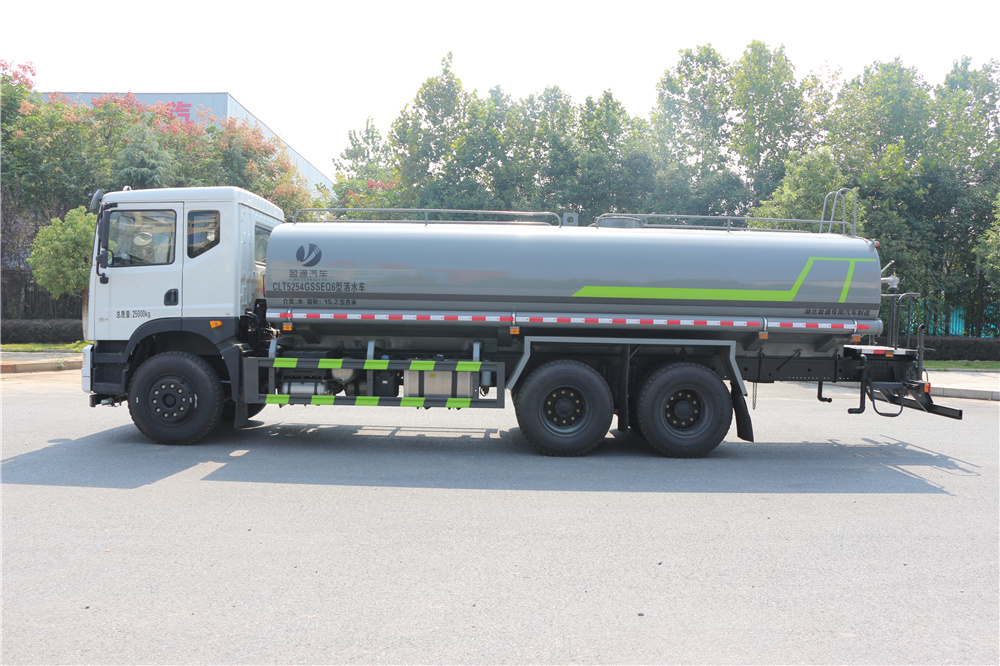 整車說明:ABS型號:3631010-C2000,J ABS;ABS生產企業:東科克諾爾商用車制動系統(十堰)有限公司,焦作博瑞克控制技術有限公司;選裝描述:隨底盤選裝駕駛室,選裝附件布局;側后防護情況:側、后防護材料均為:Q235碳鋼,連接方式均為:螺栓連接,后部防護截面尺寸(mm):120×50,后部防護離地高度(mm):480;罐體有效容積(立方米)、罐體外形尺寸(mm):罐體有效容積:15.2立方米;罐體外形尺寸(長×長軸×短軸)(mm):6900×2370×1360;專用功能及裝置:該車主要用于城鄉園林綠化,路面噴灑,除塵和降溫;主要裝置為水罐及噴灑裝置;