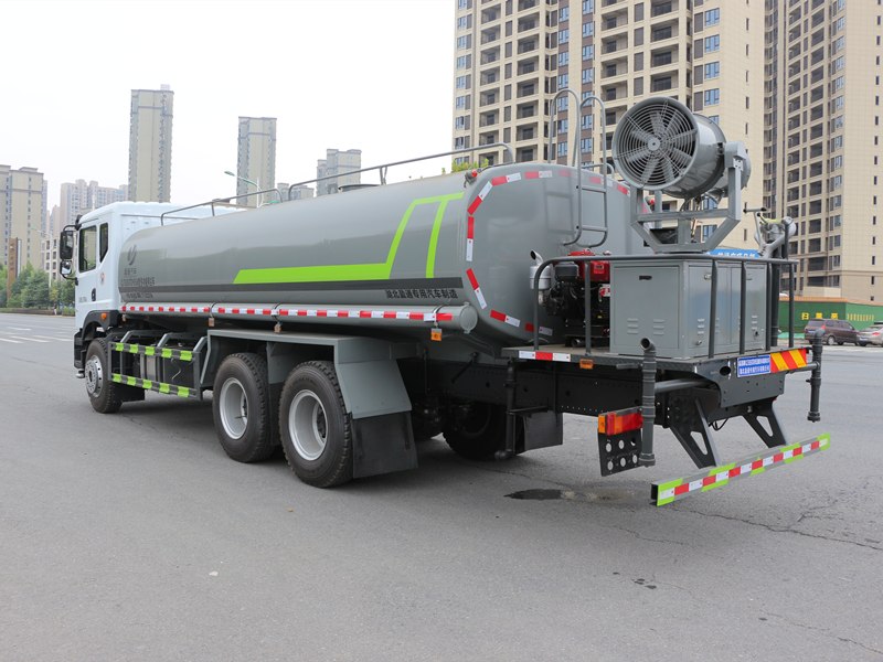 | 用功能配置:罐體實際容積約為22立方米,(罐體有效參數17.6立方米、額定載質量13405kg、)采用武鋼優質碳鋼板卷壓成型。配備專用灑水泵,自吸自排,前噴后灑、側噴、后工作平臺及灑水高壓炮。灑水泵自吸高度為6米左右,整車灑水寬度14米左右,后工作平臺水炮可調成:直沖狀、大雨、中雨、小雨、毛毛雨,有效射程≥28米,整車帶接頭、水位計,自流閥。后工作平臺主管路帶1寸澆花接口,附送2根3米水管,1個爬梯,兩側及后保險杠。 |