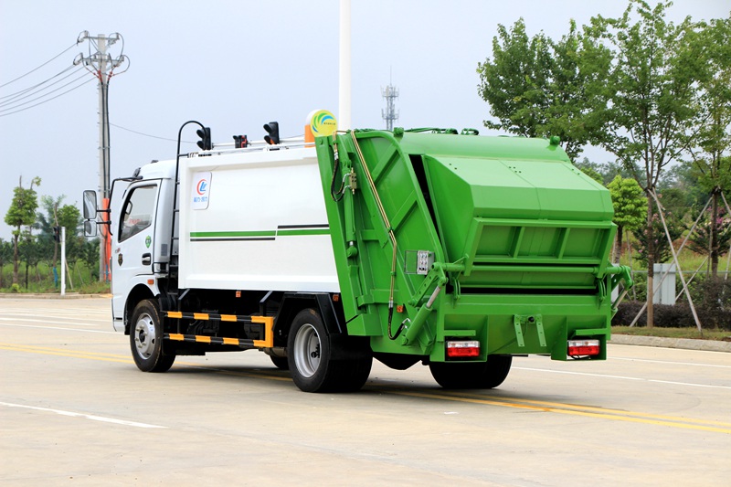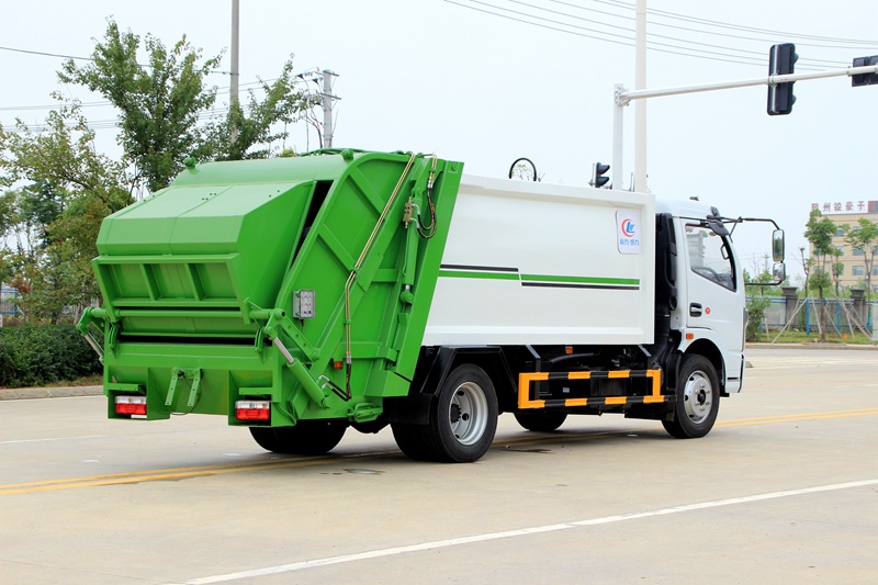 新款平面弧形廂體,廂體材料為武鋼優質碳鋼,有效壓縮容積8立方,PLC一鍵操作控制,手電一體操作模式,兩側雙電控,帶駕駛室內操作,底板支撐加強,雙向壓縮,開放式易清潔污水箱。壓縮式垃圾車采用機電液一體化技術,借助機、電、液聯合自動控制系統、電腦控制、手動操作系統,通過填裝器和推鏟等專用裝置,實現垃圾倒入、壓碎或壓扁、強力裝填,把垃圾擠入車廂并壓實和推卸,污水全部進入污水收集箱,解決了垃圾運輸過程中的二次污染的問題。壓縮式垃圾車具有自動反復壓縮以及蠕動壓縮功能,壓縮比高、密封性好、裝載量大﹑操作方便、環保性好﹑整車利用功率高等優點。作業自動化,垃圾收集方式簡便、高效。