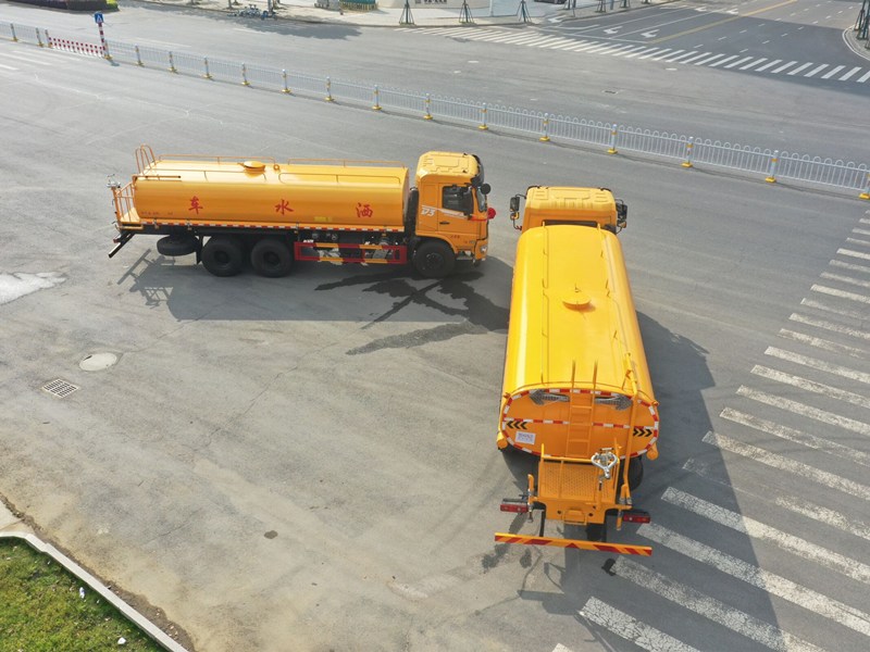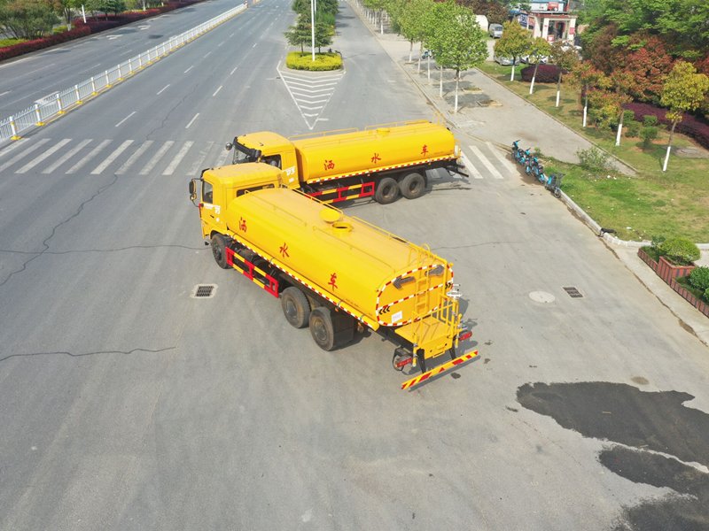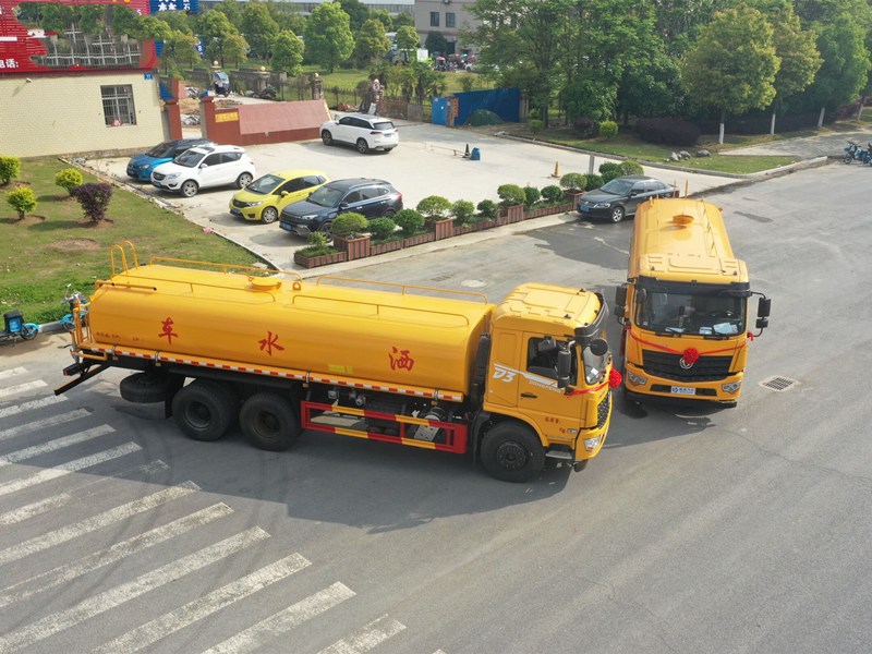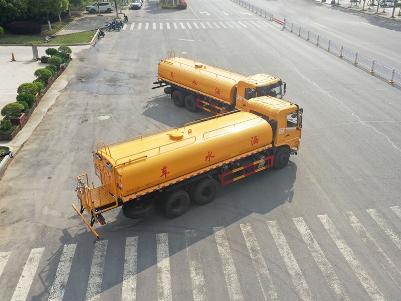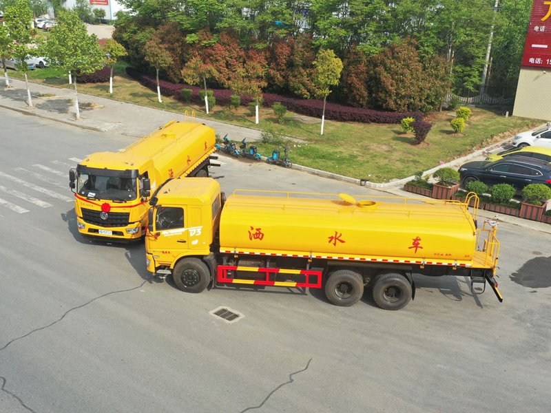 11.00R20鋼絲胎,空調、中控鎖、電動玻璃、氣囊座椅、多功能方向盤、 轉向器及離合器液壓助力,氣壓制動,排氣制動。- 用功能配置:罐體實際容積約為19立方米,(罐體有效參數15.17立方米、額定載質量14520kg、)采用武鋼優質碳鋼板卷壓成型。配備專用灑水泵,自吸自排,前噴后灑、側噴、后工作平臺及灑水高壓炮。灑水泵自吸高度為6米左右,整車灑水寬度14米左右,后工作平臺水炮可調成:直沖狀、大雨、中雨、小雨、毛毛雨,有效射程≥28米,整車帶接頭、水位計,自流閥。后工作平臺主管路帶1寸澆花接口,附送2根3米水管,1個爬梯,兩側及后保險杠。 - 19噸東風D3后雙橋灑水車選裝配置: - 1、可選裝4個或6個駕駛室內操作氣動球閥; - 2、可選裝前置電子灑水炮駕駛室一鍵操作。 - 3、后平臺可加裝30米、40米全自動柴油霧炮機組;可噴灑農藥,防役消毒,工地噴霧,拆遷降塵多功能使用。 - 4、可另加裝箭頭燈一對! - ※ 詳細資料及圖片請直接與我公司聯系,以上產品介紹僅作參考,定車請以合同內容為準。