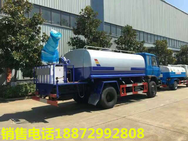 抑塵車配備大功率專用灑水泵,泵可自吸自排,安裝過濾網,帶消防接口,可通過消防栓進水,帶自流閥,隨車選裝20米綠化卷盤,可噴灑農藥,罐體金屬漆。罐體有橢圓和方圓罐兩種,可根據用戶的要求定做