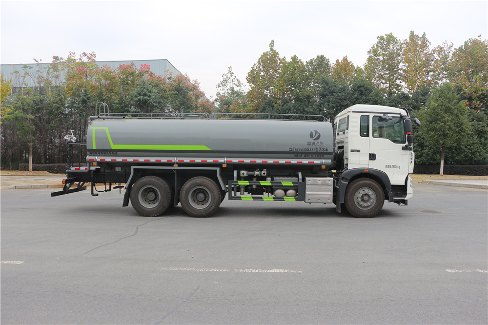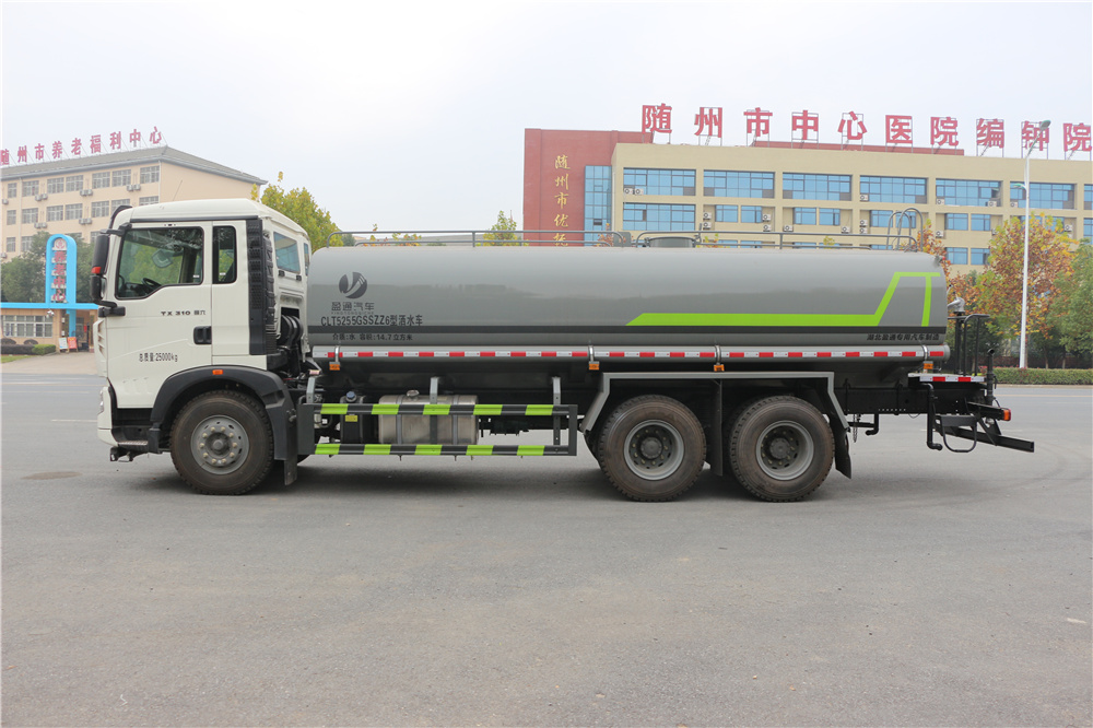 - 灑水車 產品主要技術資料 - 產品名稱: - 灑水車 - 外型尺寸(mm): - 9850×2500,2550×3200,3300 - 底盤型號: - ZZ1257N464GF1 - 貨廂尺寸(mm): - ×× - 總 質 量 :(kg) - 25000 - 接近/離去角(° ) - 19/13,19/14 - 額定質量:(kg) - 14070,14005 - 前懸/后懸(mm): - 1430/2770,1500/2700,1430/2470,1500/2400 - 整備質量:(kg) - 10800(Kg) - 最高車速(km/h): - 110 - 排放標準: - 國六 - 底盤參數(shù) - 底盤型號: - ZZ1257N464GF1 - 軸荷: - 7000/18000(二軸組) - 軸 數(shù): - 3 - 燃油種類: - 柴油 - 軸 距(mm): - 3200+1350,3175+1400,3800+1350,3775+1400,4100+1350,4075+1400,4300+1350,4275+1400,4600+1350,4575+1400,4900+1350,4875+1400,5200+1350,5175+1400,5800+1350,5775+1400,5740+1470,5800+1470 - 前 輪 距(mm): - 2015,2035 - 駕駛室乘人數(shù): - 2,3 - 后 輪 距(mm): - 1830/1830,1850/1850 - 輪 胎 數(shù): - 10 - 彈簧片數(shù): - 11/12,11/10,10/12,4/12,4/5,3/10,3/4,2/4,4/-,3/-,2/-,4/-/-,3/-/-,2/-/- - 輪胎規(guī)格: - 315/80R22.5 16PR,295/80R22.5,12R22.5,12.00R20 16PR,11.00R20 - 整車說明: - 該車主要用于城鄉(xiāng)園林綠化,路面噴灑,除塵和降溫;主要裝置為水罐及噴灑裝置;隨底盤選裝駕駛室,罐體有效容積:14.7立方米;罐體外形尺寸(長×長軸×短軸)(mm):6500×2360×1400;采用軸距(mm):4600+1350,4300+1350;側后防護情況:側、后防護材料均為:Q235碳鋼,連接方式均為:螺栓連接,后部防護截面尺寸(mm):120×50,后部防護離地高度(mm):480;ABS系統(tǒng)控制器生產企業(yè)/型號為威伯科(上海)管理有限公司/4460046300;選裝EBS,EBS系統(tǒng)控制器生產企業(yè)/型號為威伯科(上海)管理有限公司/EBS3。 - 發(fā)動機參數(shù) - 發(fā)動機型號 - 發(fā)動機生產企業(yè) - 排量(ml) - 功率(kw) - MC07H.33-60