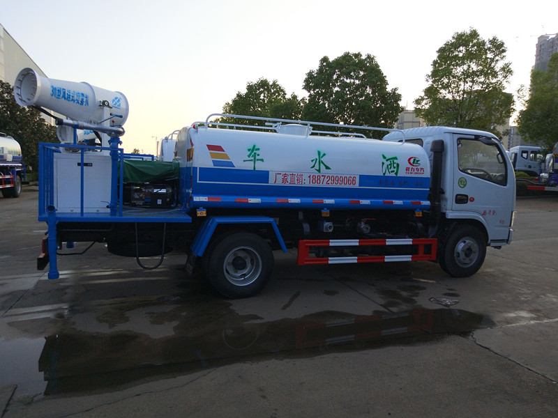 東風5噸灑水車-噴霧車-程≧7米,灑水寬度≧14-16米,射程≧25-30米,引水時間<5min,流量60m3/h。前沖(噴)、后灑、帶側噴(花灑)、帶后工作平臺、平臺上安裝綠化灑水高炮(炮噴射形狀可調節:直沖、大雨、中雨、毛毛雨、霧狀、可連續調節,360°旋轉),配消防接口,自流閥,濾網,帶自吸自排功能。配備大功率專用灑水泵,泵可自吸自排,安裝過濾網,帶消防接口,可通過消防栓進水,帶自流閥,隨車選裝20米綠化卷盤,