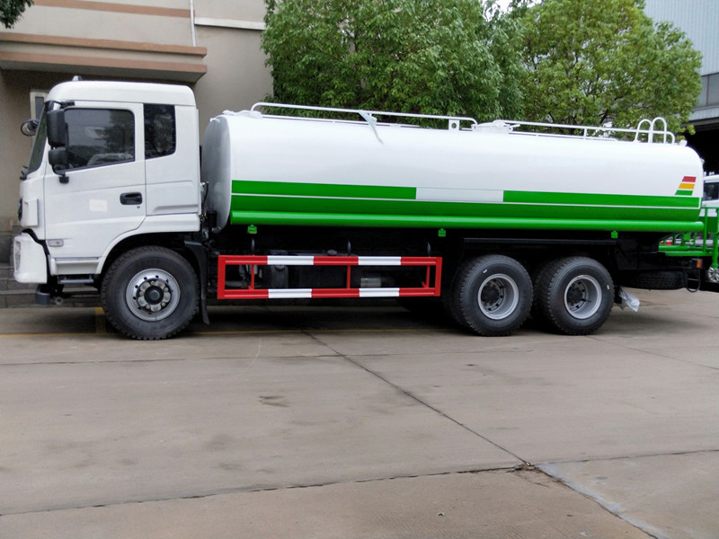 東風20噸灑水車罐體有效容積21立方米,介質:丙酮水溶液,密度:800千克/立方米,罐體尺寸為(mm): 6900×2400×1550;2,防護材料:Q235A碳鋼, 吸程≧7米,灑水寬度≧14-16米,射程≧25-30米,引水時間<5min,流量60m3/h。前沖(噴)、后灑、帶側噴(花灑)、帶后工作平臺、平臺上安裝綠化灑水車高炮(炮噴射形狀可調節:直沖、大雨、中雨、毛毛雨、霧狀、可連續調節,360°旋轉),配消防接口,自流閥,濾網,帶自吸自排功能。配備大功率專用灑水車水泵,泵可自吸自排,安裝過濾網,帶消防接口,可通過消防栓進水,帶自流閥,隨車選裝20米綠化卷盤,可噴灑農藥,罐體金屬漆。罐體有橢圓和方圓罐兩種,可根據用戶的要求定做  發動機可選