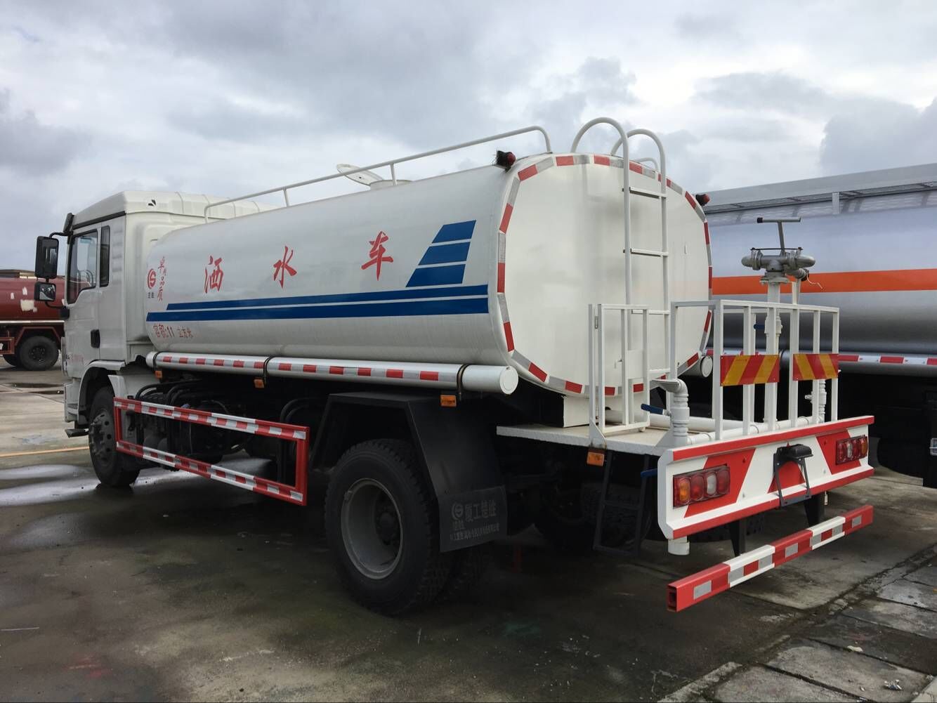 采用國標(biāo)武鋼碳鋼板材制作,罐體實際容積12立方,前沖(噴)、后灑、帶側(cè)噴(花灑),帶后工作平臺,平臺上安裝鋼制芯專用大功率綠化灑水高炮(炮有直流狀、大雨、毛毛雨、霧狀可調(diào)節(jié),可噴灑農(nóng)藥),配備大功率專用灑水泵,帶消防接頭,帶自流閥,帶自吸功能。同時可以用于臨時應(yīng)急消防灑水,每輛灑水車都配備消防專用接口。由發(fā)動機帶動變速箱,變速箱上安裝的取力器帶動灑水泵,灑水泵產(chǎn)生主要動力,將罐體內(nèi)部的液體通過管網(wǎng)噴灑出去。自吸高度:≤7m,灑水寬度:≥20m,最大射程:≥28m;可調(diào)節(jié)成柱狀,射程≥28m;也可調(diào)節(jié)成霧狀,射程≥15m。前噴后灑,前裝有鴨形噴嘴或圓頭沖嘴,后面裝有圓柱開灑水噴嘴或蓮蓬頭噴嘴,后部有一工作平臺,裝配有高壓水炮。后部還可裝8個噴嘴(選裝)噴水器一般用于沖洗街道。可選配藥盤、打藥機。也可加裝藥盤、藥泵、罐內(nèi)防腐防銹、多方位進出水接頭、電磁閥、氣動閥等先進設(shè)施,以滿足不同用戶需求。