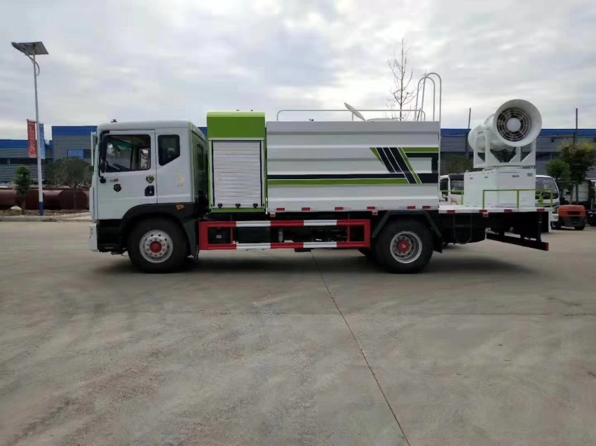 前沖、后灑、側(cè)噴、后工作平臺、360度可調(diào)節(jié)綠化水炮,水泵垂直吸程≧7米,前沖灑水寬度≧14米,綠化水炮射程≧35米,自流閥、濾網(wǎng)、消防接口(可連接消防栓取水,可作應(yīng)急消防用)。罐前量管(觀察罐內(nèi)水位)、罐后爬梯、罐上罐口帶簡易護(hù)欄、罐側(cè)雙炮筒、6米長4寸鋼絲塑膠管兩根,罐體表面雙層油漆工藝,防銹、耐腐蝕,其余有廠家標(biāo)配。可選擇加裝加裝藥盤、氣動控制閥、噴藥設(shè)備、罐內(nèi)防腐等。也可加裝液位計(jì)。可配置全功率消防車灑水車水泵,應(yīng)急時(shí)可作消防灑水車之用。我廠生產(chǎn)的灑水車均為多功能綠化噴灑車,可滿足不同用戶在不同的使用環(huán)境中使用,灑水泵可起到吸水和加壓排水功能,也可不通過泵自排水。