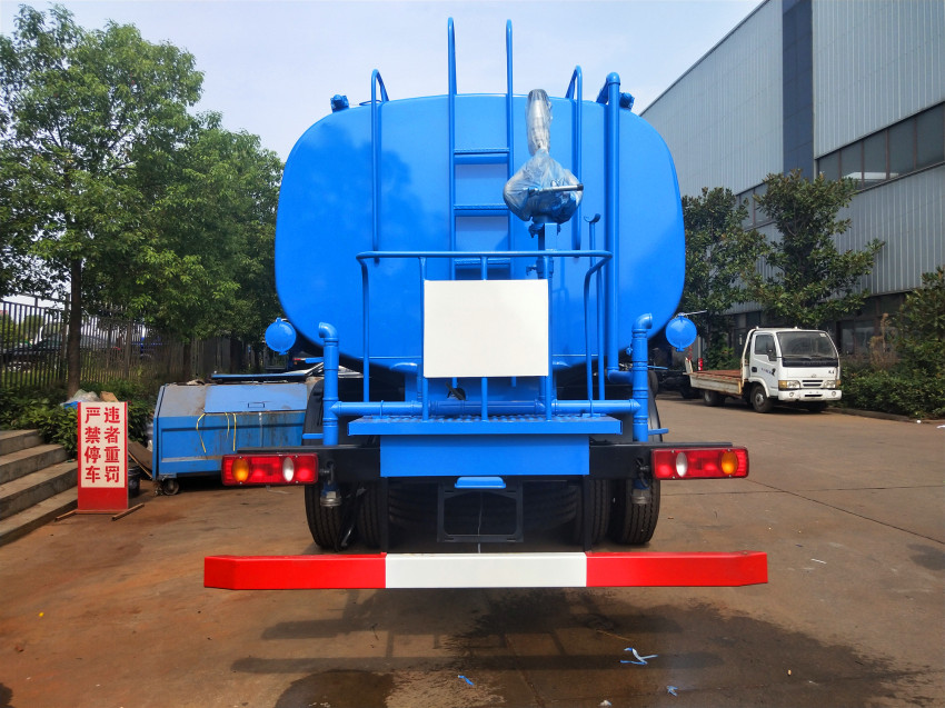 :罐體容積為12立方灑水車,罐體鋼板為4mm碳鋼Q235材質,罐內隔板具有防波作用,以減輕汽車行駛時罐體液體沖擊,罐體及整車外形尺寸按照公告。帶大功率專用灑水泵,泵可自吸自排,整車前沖、后灑、側噴、帶65消防接口,后平臺帶綠化灑水車,灑水炮,灑水炮可全方位旋轉,可連續調成直沖狀、大雨、小雨、毛毛雨;前封頭帶水位計,后平臺主管路帶1寸澆花接口,后爬梯。平臺后部帶小安全告知牌:“隨時停車,注意安全”,帶兩根水管及陰陽端。罐體顏色:上白/下藍,銀灰/銀藍,罐體兩側噴“灑水車、綠化灑水車”字樣,貼反光標示。灑水車可加裝前沖后灑氣動閥駕駛室控制、可加裝霧炮機組發電機組噴霧降塵裝置、車頭可加裝推雪雪鏟、雪滾裝置街道、公路除雪等。