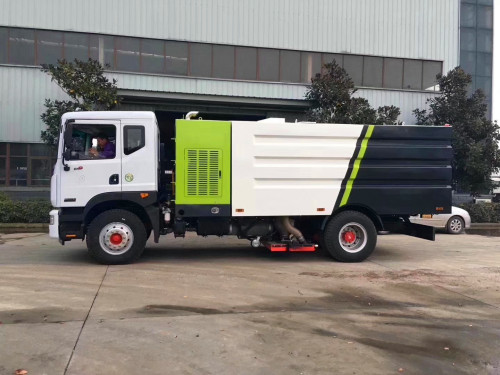 該吸塵車是采用東風(fēng)天錦國(guó)六二類原廠汽車底盤改裝,加裝副發(fā)動(dòng)機(jī)、風(fēng)機(jī)、清水箱、垃圾箱、中置吸盤,工作視頻探頭,自動(dòng)脈沖清理功能,液壓系統(tǒng)、專用裝置電控系統(tǒng)和副車架等改裝而成。