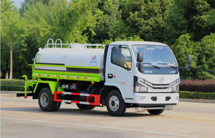 灑水車底盤配置:采用東風多利卡底盤、朝柴99馬力發動機、5檔變速箱、1.8噸前橋、3.5噸后橋、3300mm軸距、7.00-16輪胎、單排前翻駕駛室。