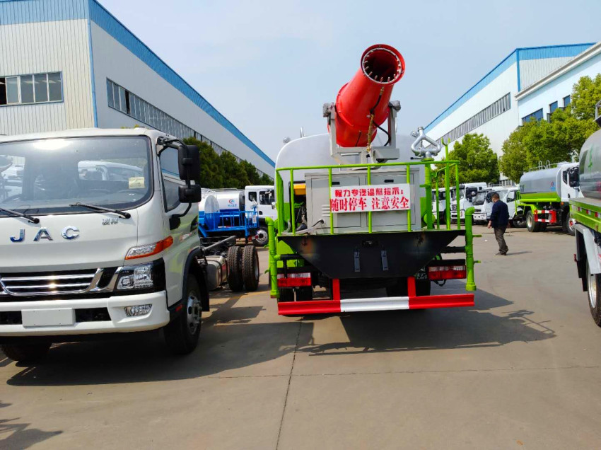 灑水車高炮:利用裝于車后部平臺的灑水炮將水噴射出去,用于綠化澆水或應(yīng)急消防;高炮可達(dá)25米 。