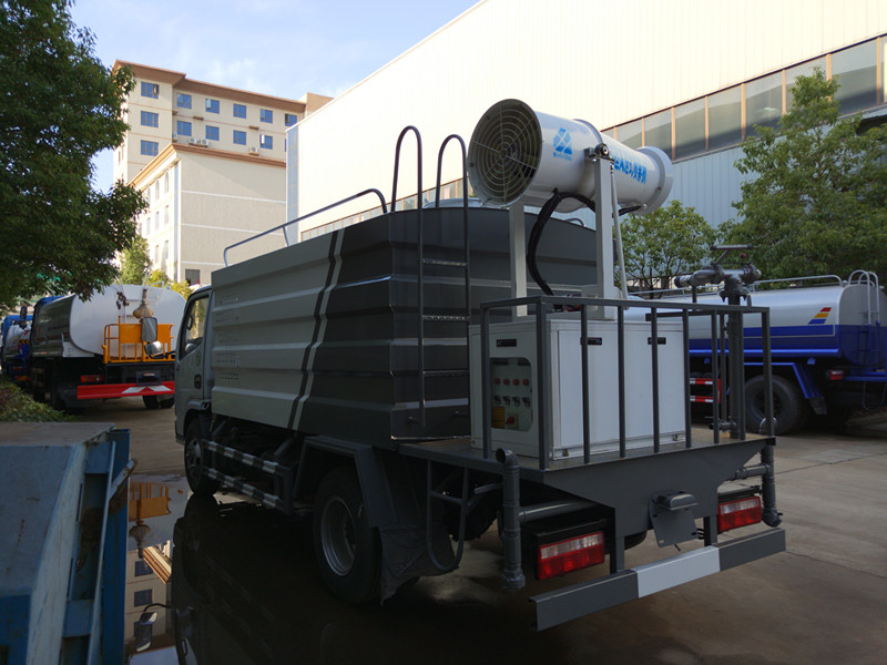 抑塵車罐體為橢圓形或方形,采用武鋼優質碳鋼板制成,罐體倉內1.5米一道隔板,具有防波防蕩作用,還可按用戶要求進行專業的防腐防銹處理,罐體外可用發泡或巖棉加裝保溫層起保溫功能。可選裝藥盤,藥泵、高壓噴藥設備、非車帶泵動力等.、罐內防腐防銹、多方位進出水接頭、氣動閥、警燈等先進設施,以滿足不同用戶需求。