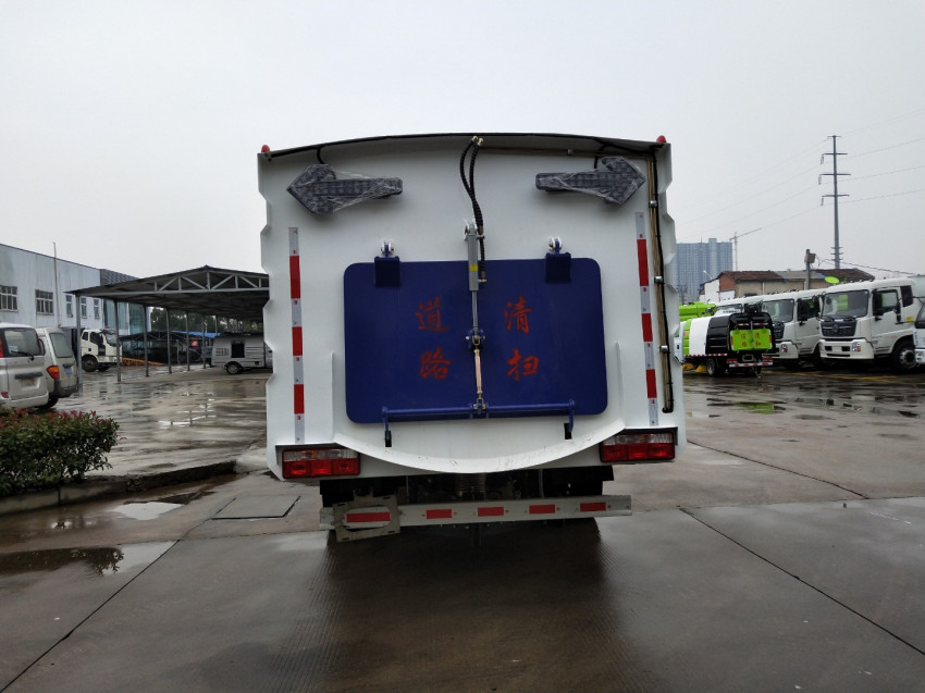 上裝標配:帶4個掃盤、江鈴副發動機、三洋馬達、施耐德控制開關、海普瑞斯電磁閥組、無級變速自動離合器、免維護離心式自動風機、不銹鋼垃圾箱、尾部LED箭頭指示燈、手動泵應急系統、中聯北極星電子水泵,垃圾舉升自卸功能。