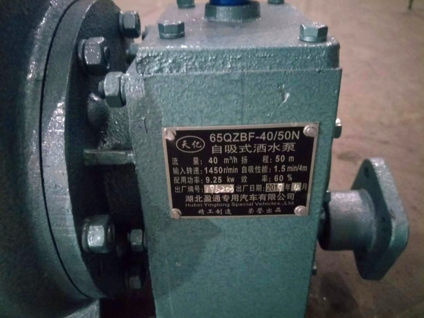 灑水車水泵灑水車專用: 65QZB-50/110N 流量(m3/h): 50m3, 揚程(m):110,輸出轉速:1480, 軸功率(kw) : 24, 自吸高度(m): 6.5, 自吸時間(min/5m): 1.0 效率:60% ,備注: 左旋轉