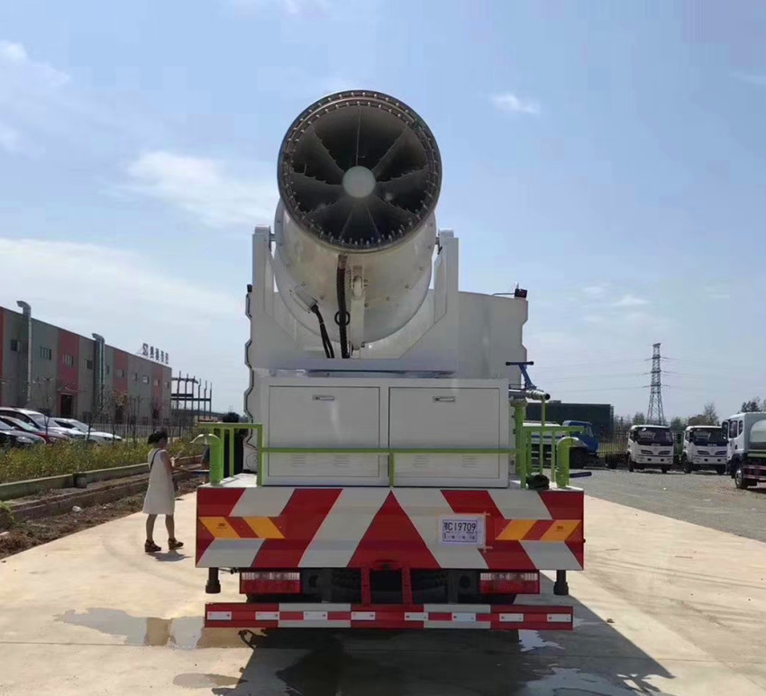 灑水車吸程≧7米,灑水寬度≧14-16米,射程≧25-30米,引水時間<5min,流量60m3/h。前沖(噴)、后灑、帶側噴(花灑)、帶后工作平臺、平臺上安裝綠化灑水高炮(炮噴射形狀可調節:直沖、大雨、中雨、毛毛雨、霧狀、可連續調節,360°旋轉),配消防接口,自流閥,濾網,帶自吸自排功能。配備大功率專用灑水泵,泵可自吸自排,安裝過濾網,帶消防接口,可通過消防栓進水,帶自流閥,此車尾部帶大功率噴霧炮,霧炮射程可選裝50-100米,帶獨立柴油發電機組。