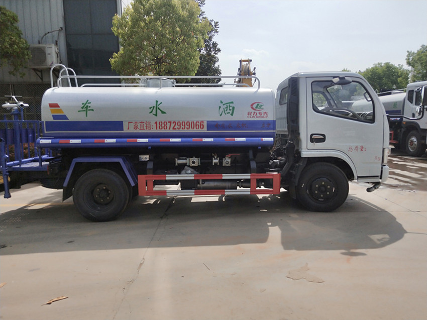 二、東風國六5噸灑水車價格報價,東風多利卡5噸灑水車價格¥9.8萬元起,國五 多利卡D6,軸距3308,1730單排前翻轉駕駛室,朝柴 102馬力/全柴115馬力,變速箱5A100(5TS40)5擋變速箱,前后橋1.8/3.5T,車架190,板簧6/6+5,輪胎7.00R16鋼絲胎,動轉、方向助力、氣剎、ABS、空調。上裝配置:罐體容積為5立方灑水車,新款工藝罐體,厚度為4mm碳鋼Q235材質,罐內隔板具有防波作用,以減輕汽車行駛時罐體液體沖擊,罐體及整車外形尺寸按照公告。帶大功率專用灑水泵,泵可自吸自排,整車前沖、后灑、側噴。