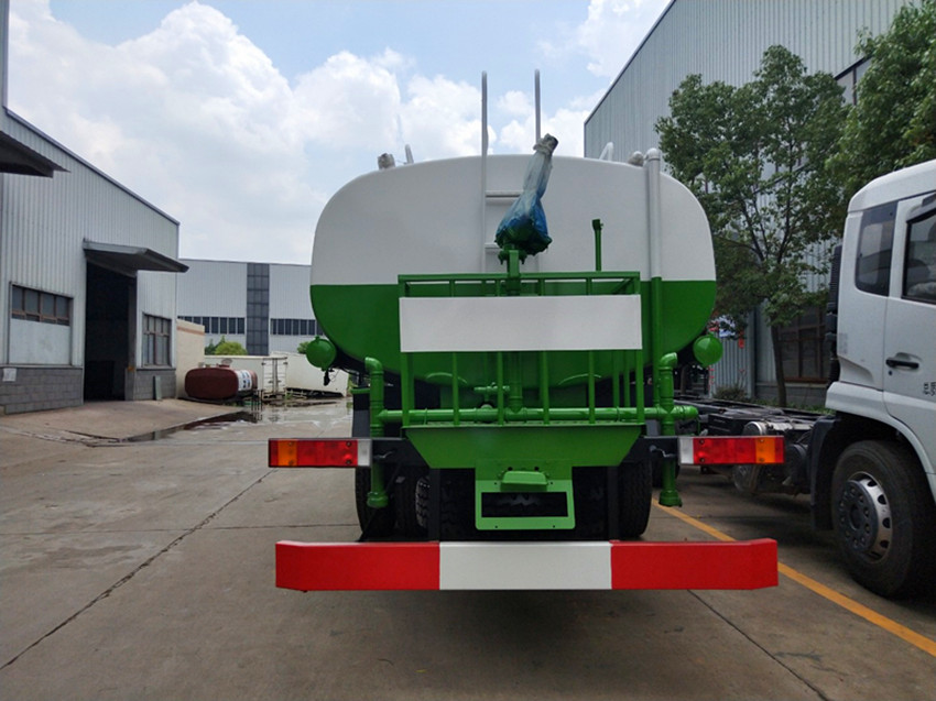東風18噸綠化灑水車上裝配置:東風御龍18噸綠化噴灑車罐體采用4mm厚武鋼產專用容積板制作,公告標準容積16.13立方米(可裝18-20方),杭州威龍大功率專用灑水泵。前沖(噴),后灑,帶側噴,后置工作平臺,平臺上安裝綠化灑水高壓炮(炮噴射形狀可調成直沖狀、大雨、中雨、毛毛雨、炮可360度旋轉,射程>35米)。帶自流閥,消防接口。帶自吸泵,可將池塘的水直接吸入罐體內也可直接從城市街道消防栓上連接注水,吸入罐體內。罐前量管(觀察罐內水位)、罐后爬梯、罐上罐口帶簡易護欄、罐側雙炮筒、6米長4寸鋼絲塑膠管兩根,罐體表面雙層油漆工藝,防銹、耐腐蝕,其余廠家標配。