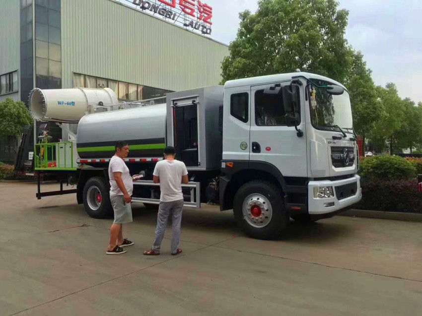 上裝配置:罐體容積為 15-18 立方多功能抑塵灑水車,選配風(fēng)送式霧炮機(jī)組射程50米、60米、80米、100米、120米,罐體鋼板為4mm碳鋼Q235材質(zhì),罐內(nèi)隔板具有防波作用,以減輕汽車行駛時(shí)罐體液體沖擊,罐體及整車外形尺寸按照公告。帶大功率專用灑水泵,泵可自吸自排,整車前沖、后灑、側(cè)噴、帶65消防接口,后平臺(tái)配CLW-50、CLW-60、CLW-80、CLW-100、CLW-120型風(fēng)送式霧炮機(jī)組;罐體前封頭配大功率柴油發(fā)電機(jī)組;遠(yuǎn)程遙控系統(tǒng)控制;霧炮機(jī)自動(dòng)旋轉(zhuǎn)角度0-360°。后平臺(tái)帶綠化灑水炮,灑水炮可全方位旋轉(zhuǎn),可連續(xù)調(diào)成直沖狀、大雨、小雨、毛毛雨;前封頭帶水位計(jì),后平臺(tái)主管路帶1寸澆花接口,后爬梯。帶兩根輸水管及陰陽(yáng)端。罐體顏色:銀/灰/綠,罐體兩側(cè)噴“多功能抑塵車”字樣,貼反光標(biāo)示。