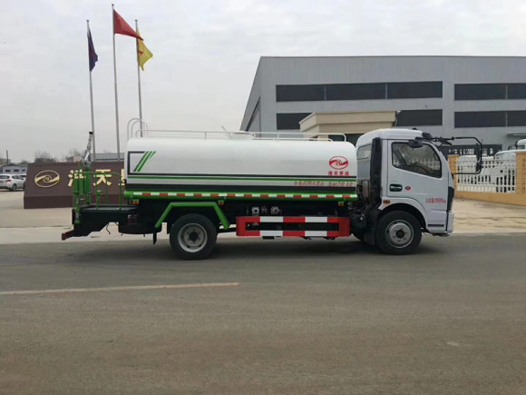 底盤采用東風底盤,7.00-16,萬里揚5檔,前橋2T,后橋3.5T,5噸灑水車,罐體采用優質碳鋼制作,3300MM軸距,帶方向助力,汽剎,有免證,有環保。前沖后灑,后工作平臺帶高炮,右位花灑,側噴。