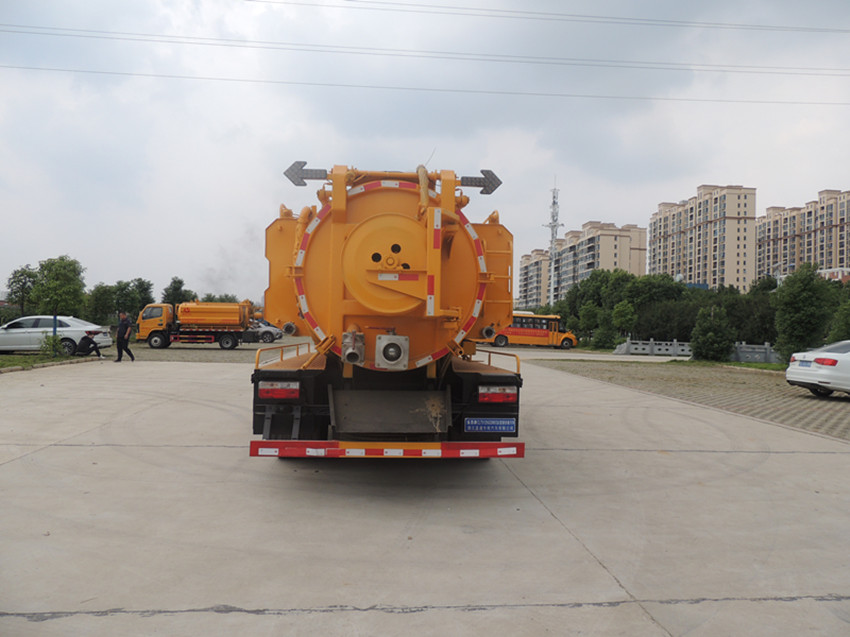 東風清洗吸污車清洗部分:清洗罐采用5mm武鋼碳鋼制作,容積約2.7方,帶視水管,安裝德國品孚高壓清洗泵,壓力22Mpa,流量215L/min,帶60米內徑19mm清洗鋼絲軟管,標配十個不同口徑合金噴頭,卷管力為1800N,卷管速度0-25m/min,推進力度大于180N,可通直徑10-80公分水管及下水道管道。