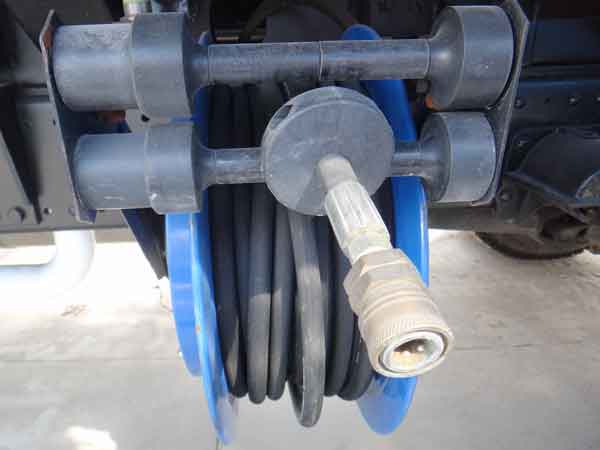 21)、側(cè)后部裝有機(jī)械式自動(dòng)卷繞沖洗卷盤(pán),配20m高壓軟管和不同角度的清洗槍,可用于清洗車身和其它設(shè)備和設(shè)施。