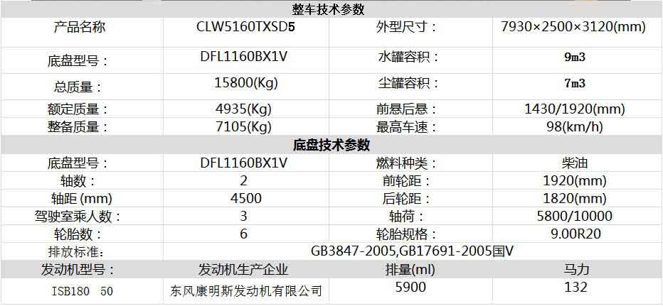 | 車型號(hào) | CLW5160TXSD5 | 底盤(pán)型號(hào) | DFL1160BX1V |