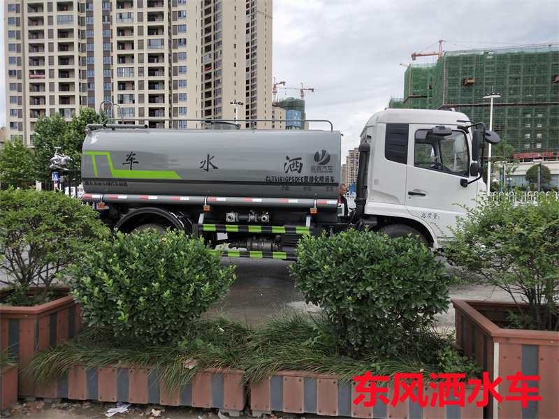 東風天錦15方灑水車性能簡介:吸程≧7米,灑水寬度≧14-16米,射程≧25-40米,引水時間<5min,流量60m3/h。前沖(噴)、后灑、帶側噴(花灑)、帶后工作平臺、平臺上安裝綠化灑水高炮(炮噴射形狀可調節:直沖、大雨、中雨、毛毛雨、霧狀、可連續調節,360°旋轉),配消防接口,自流閥,濾網,帶自吸自排功能。