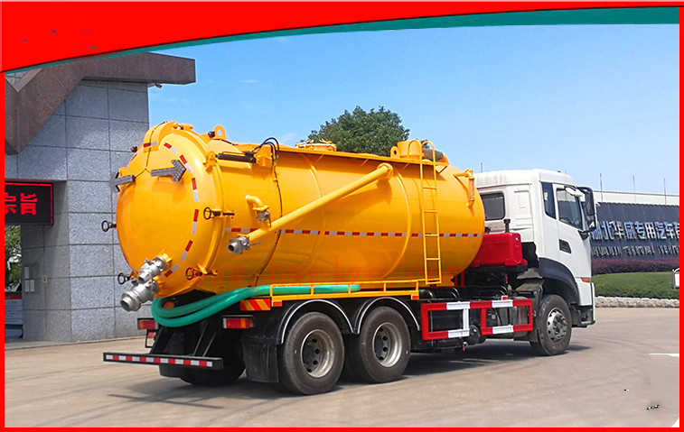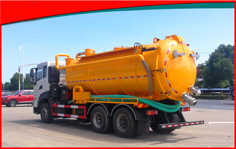 上裝為一體式罐體結(jié)構(gòu),分污水罐和清水罐兩部分,采用優(yōu)質(zhì)碳鋼制作而成,罐體厚度為8毫米,罐體內(nèi)部均安裝有爬梯,底部焊有1.6米左右的不銹鋼底板,罐體外部也安裝有爬梯。清水罐頂部安裝有排氣閥,底部安裝有排水閥。清洗部分選用350大流量高壓泵,雙向進(jìn)水,帶氣吹水功能,高壓泵安裝有過(guò)濾網(wǎng),標(biāo)配100米高壓管,后封頭8毫米厚,尾部液壓絞盤可旋轉(zhuǎn)180度,加裝有節(jié)流閥,用于控制快慢。整車上裝搭配有420馬力副發(fā)動(dòng)機(jī),標(biāo)配大型水循環(huán)泵,搭配不銹鋼水循環(huán)泵水箱,吸污管標(biāo)配長(zhǎng)度為10米。后封頭標(biāo)配有6寸球閥1個(gè),4寸球閥3個(gè),直徑600mm的液壓開(kāi)啟蓋,方便排放污水,罐體帶液壓舉升功能,排污快捷方便。