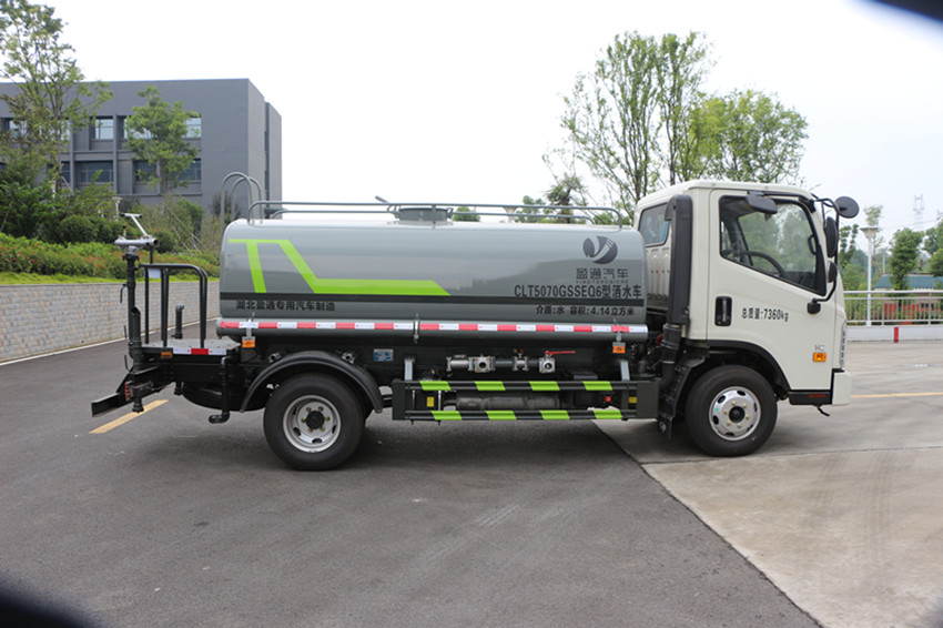該車主要用于園林綠化,主要專用裝置為噴灑總成和罐體;罐體有效容積:4.04立方米;介質: 水,密度:1000千克/立方米;罐體外形尺寸(長×長軸×短軸)(mm):3400×1600×1100;側防護及 后下部防護裝置均采用Q235A材質,均采用焊接連接,后部防護斷面尺寸(mm):100×50,后部防 護離地高度(mm):400;ABS型號為CM4XL-4S/4M,生產廠家為廣州瑞立科密汽車電子股份有限公; 隨底盤選裝駕駛室. |