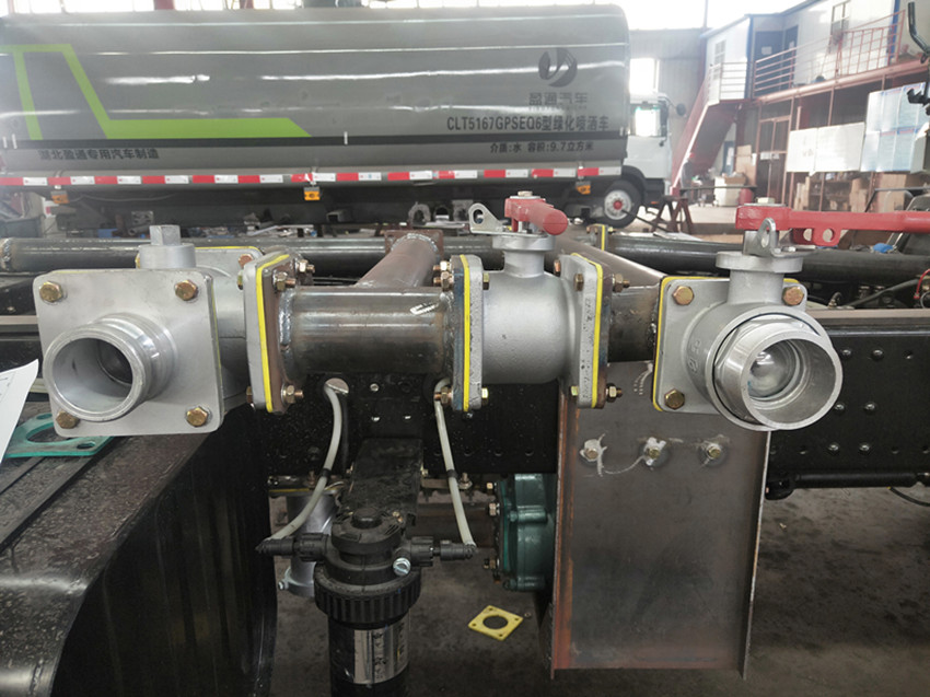 專用配置: 配備全國評比質量第一的(日本技術)大功率專用灑水泵、取力器、球閥、濾網、輸水管道、灑水裝置等部件組成。水泵、取力器、球閥、濾網均為國家標準產品,具有性能優良,工作可靠、效率高、流量大、維修方便等特點。